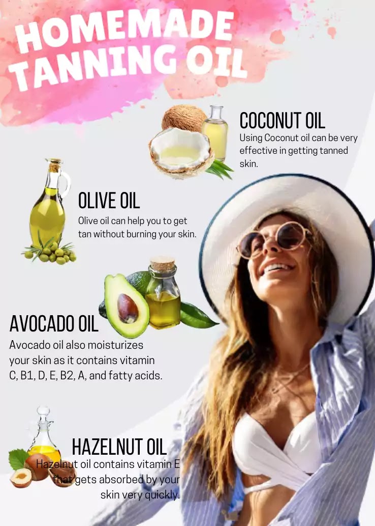 Different skin type requires different types of oil for getting tan. Here we will share with you how to prepare a homemade tanning oil that suits your skin type.